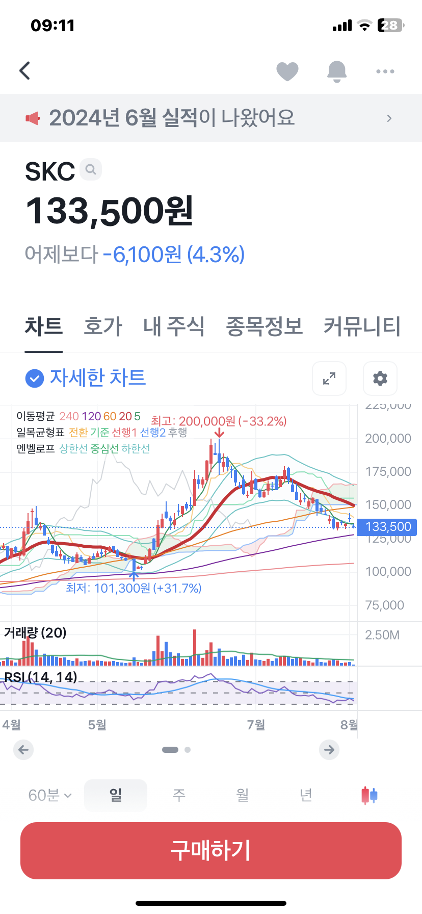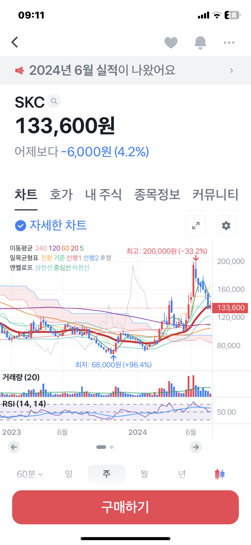 먼저 SKC의 회사 주가 차트를 한번 확인해 볼까요?