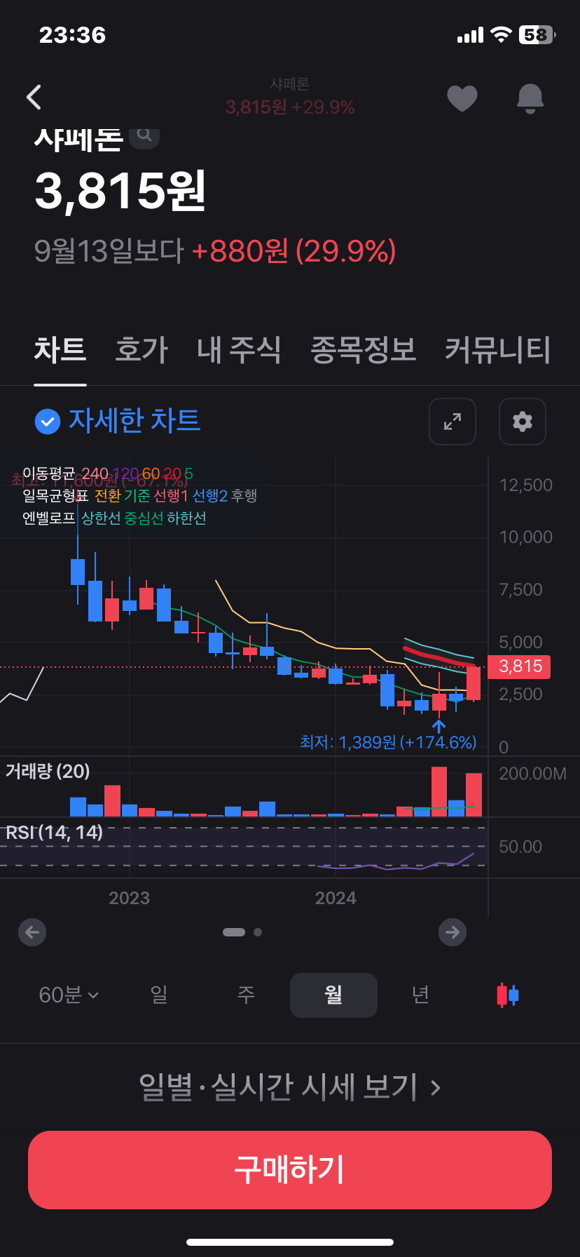 최근 샤페론의 주가가