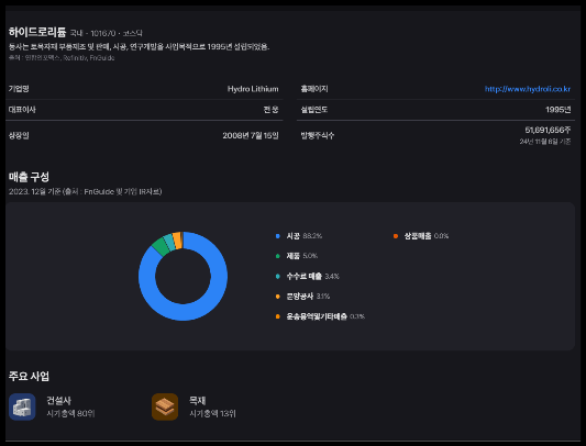 먼저 하이드로리튬은 1995년 설립된 대한민국의 기업으로,