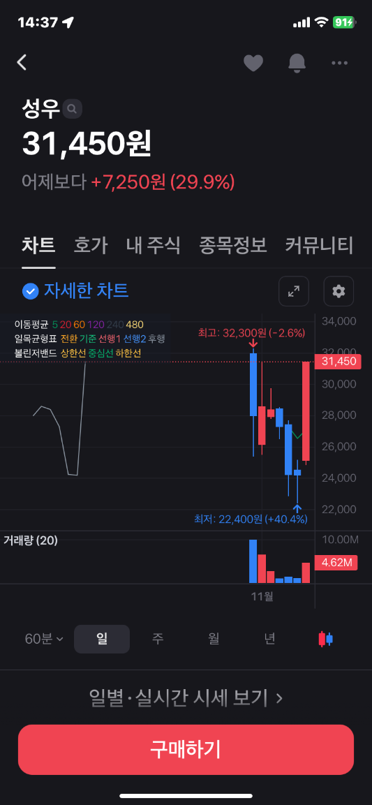 2024년 11월 8일, 성우 주식이 급등 했는데요.