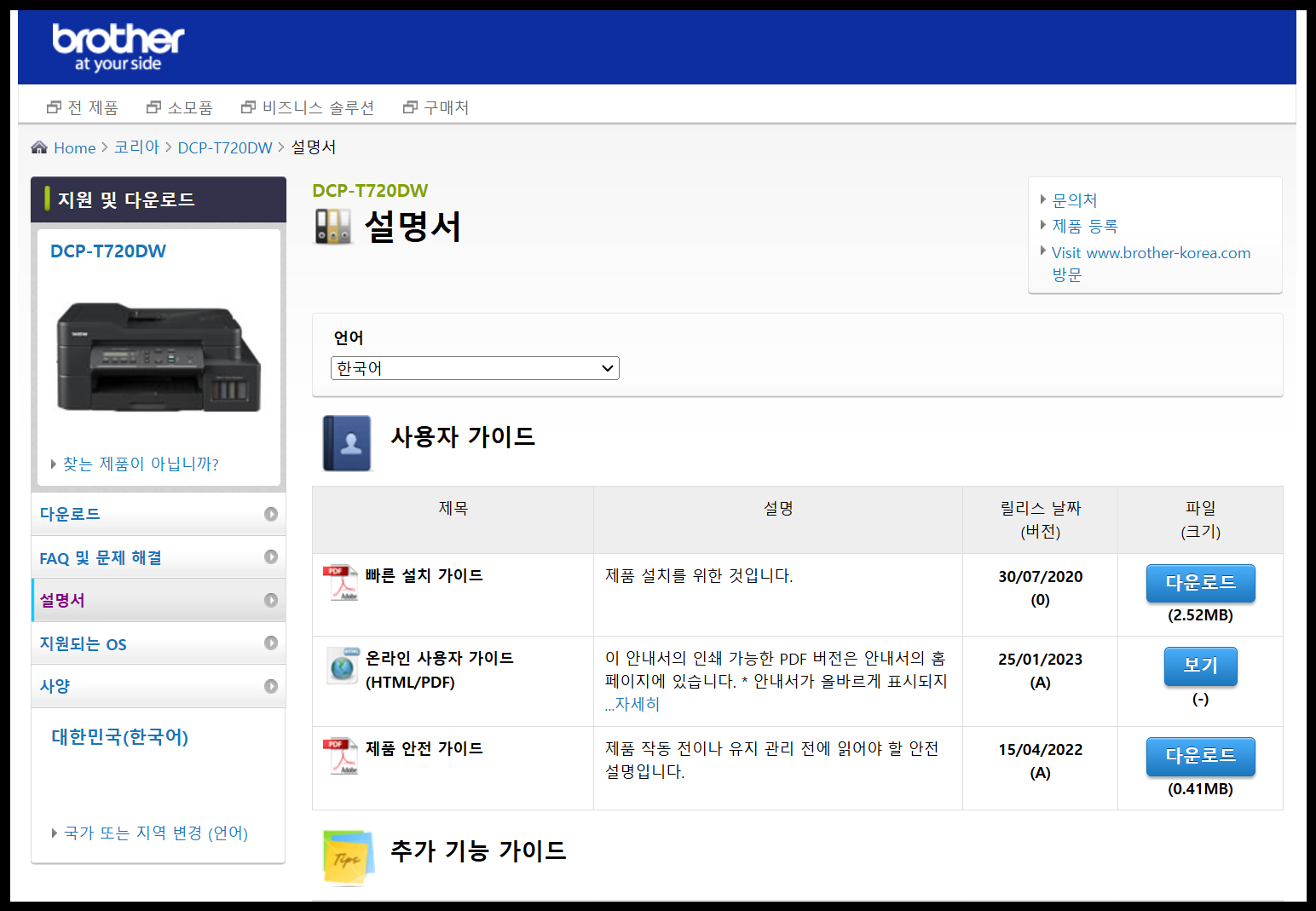 브라더 DCP-T720DW 무한잉크 프린터를 선택했는데요,