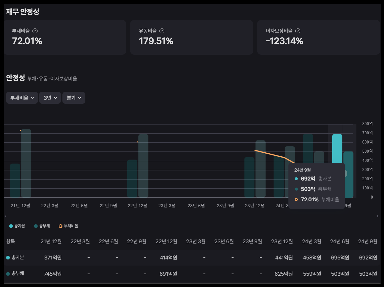 재무 상태를 살펴보면, 2024년 9월 말 기준