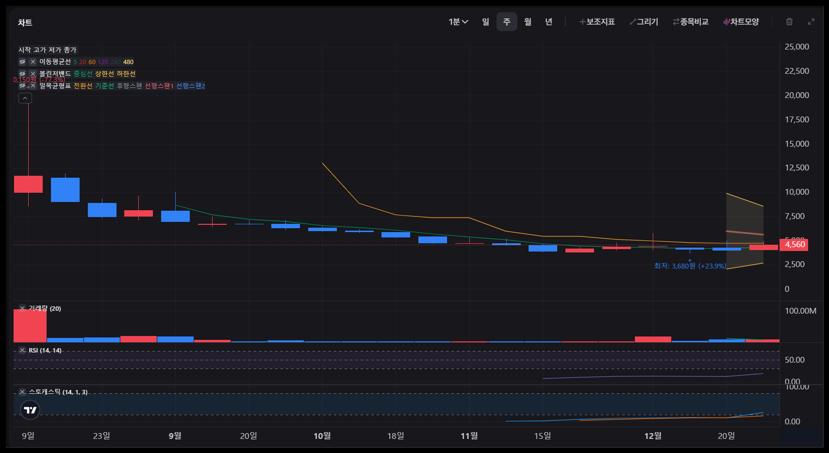 주봉 차트에서는 11월 중순부터 시작된