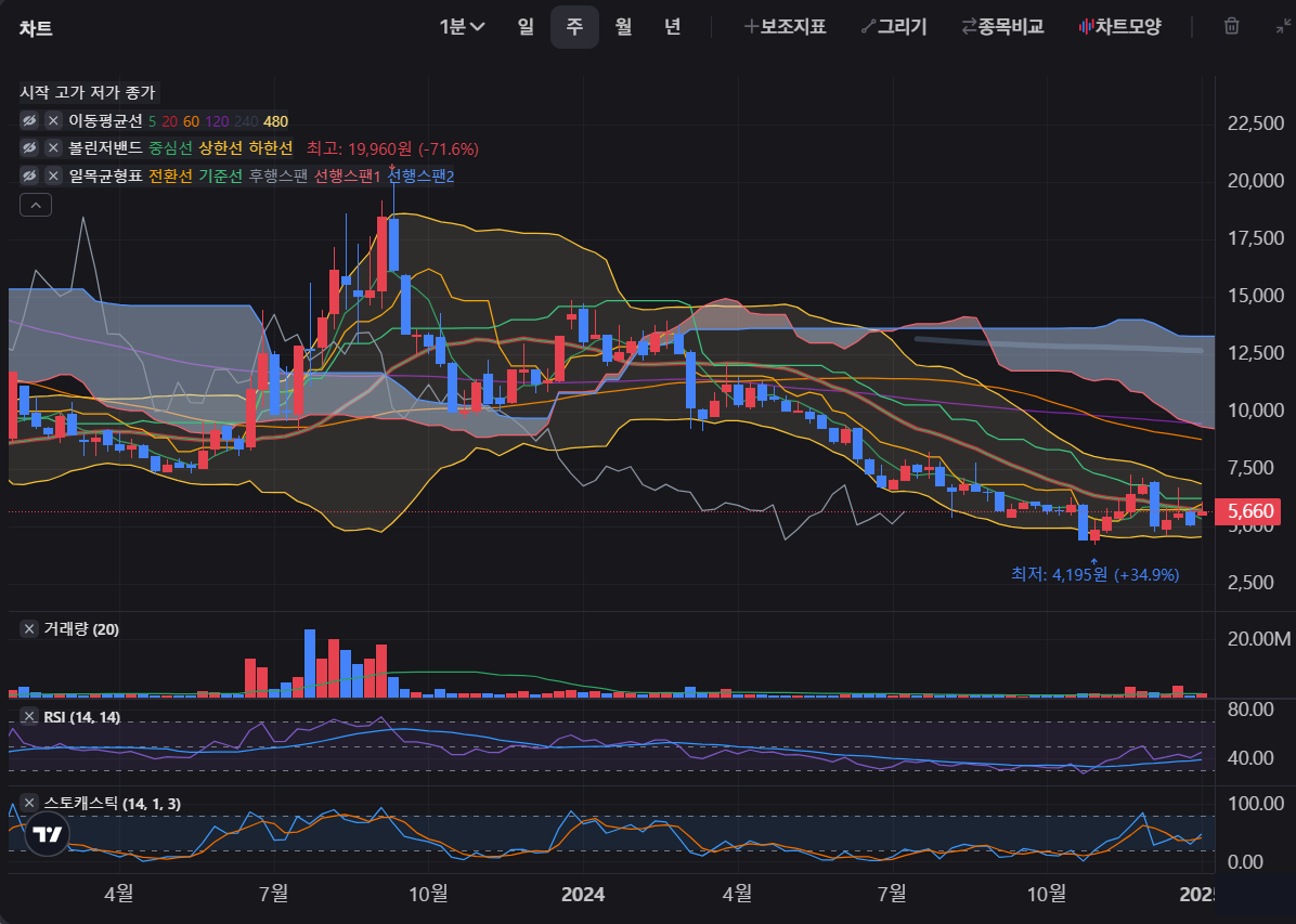 월봉 차트를 보면 2021년 고점 이후 하락세를 보였으나,