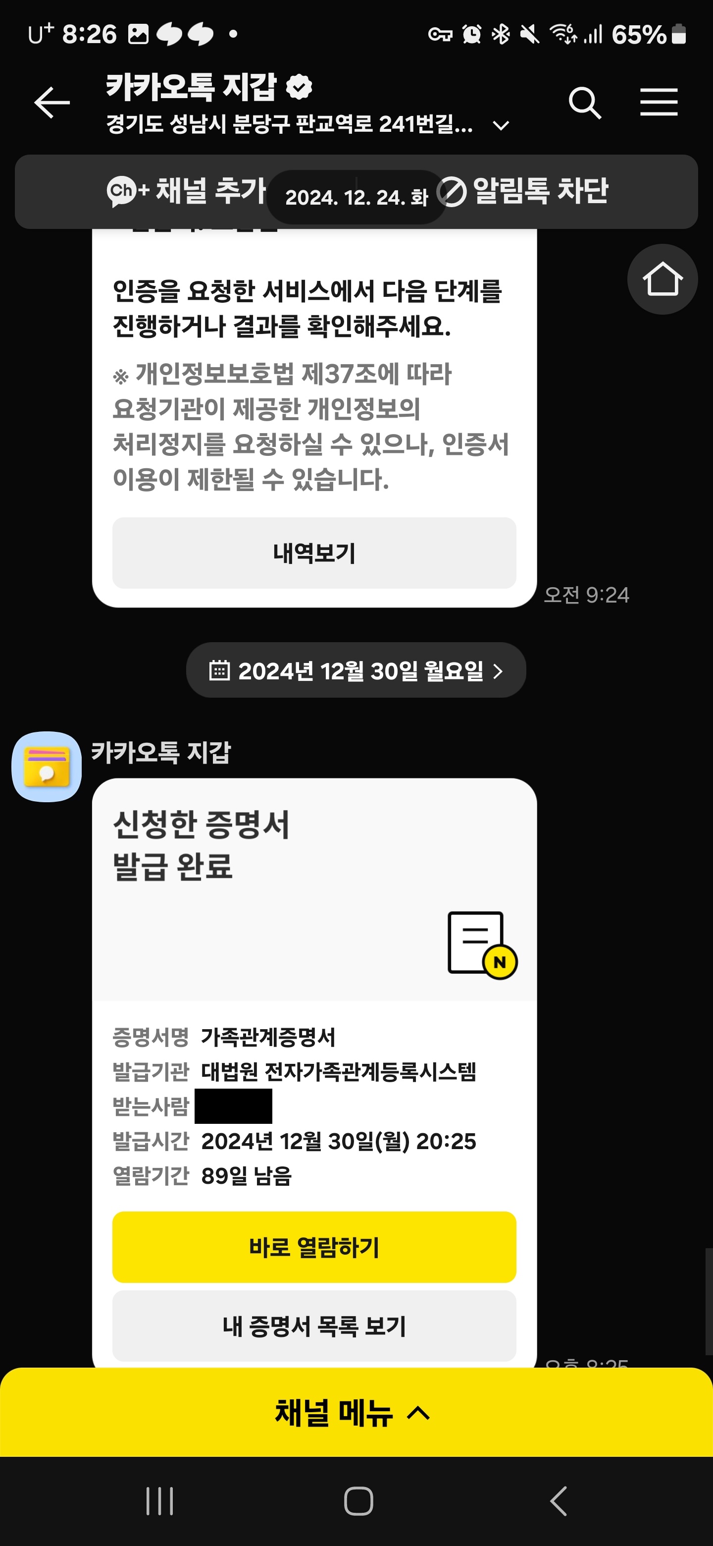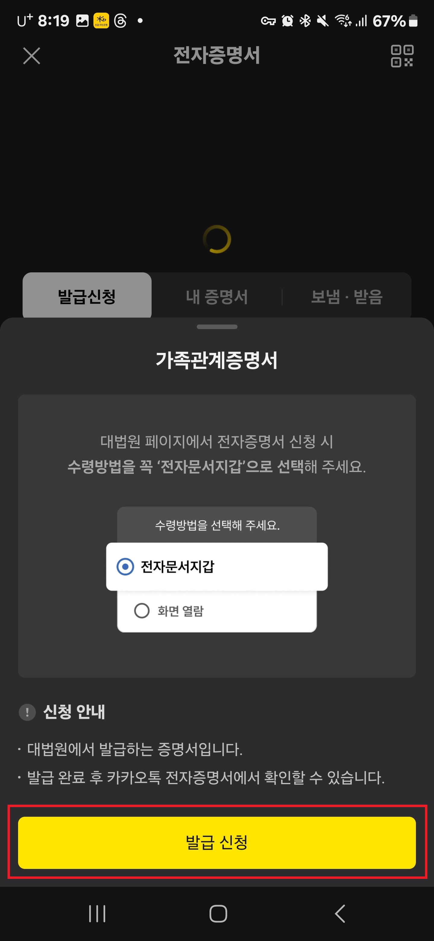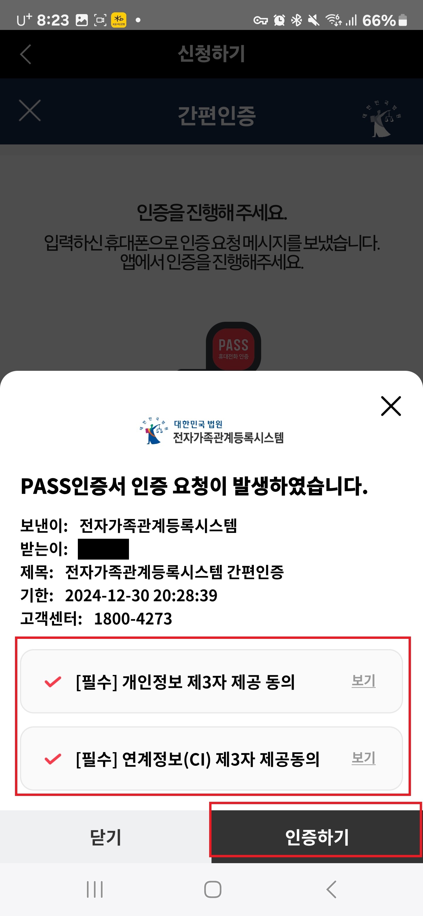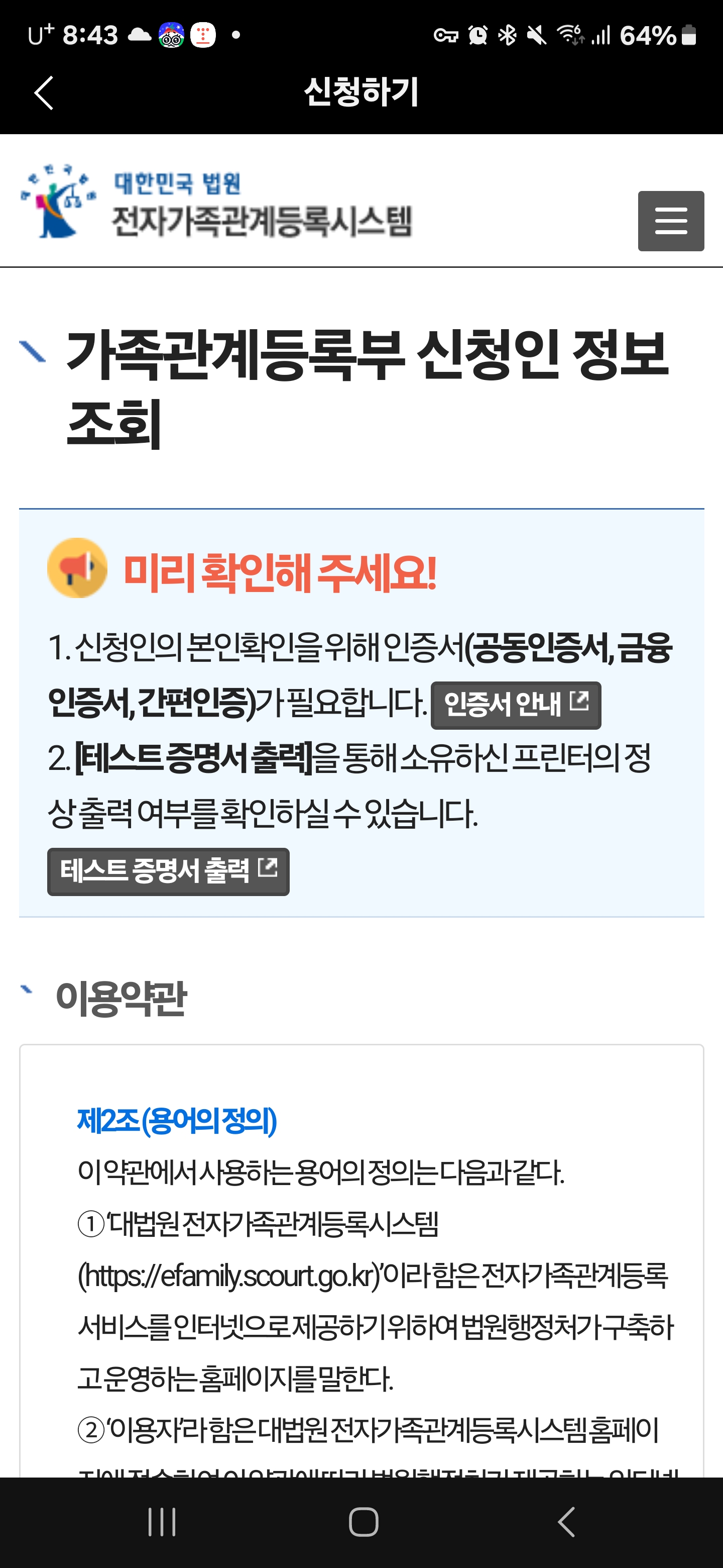 전자가족관계등록 시스템에서 신청을 했어야 했습니다.