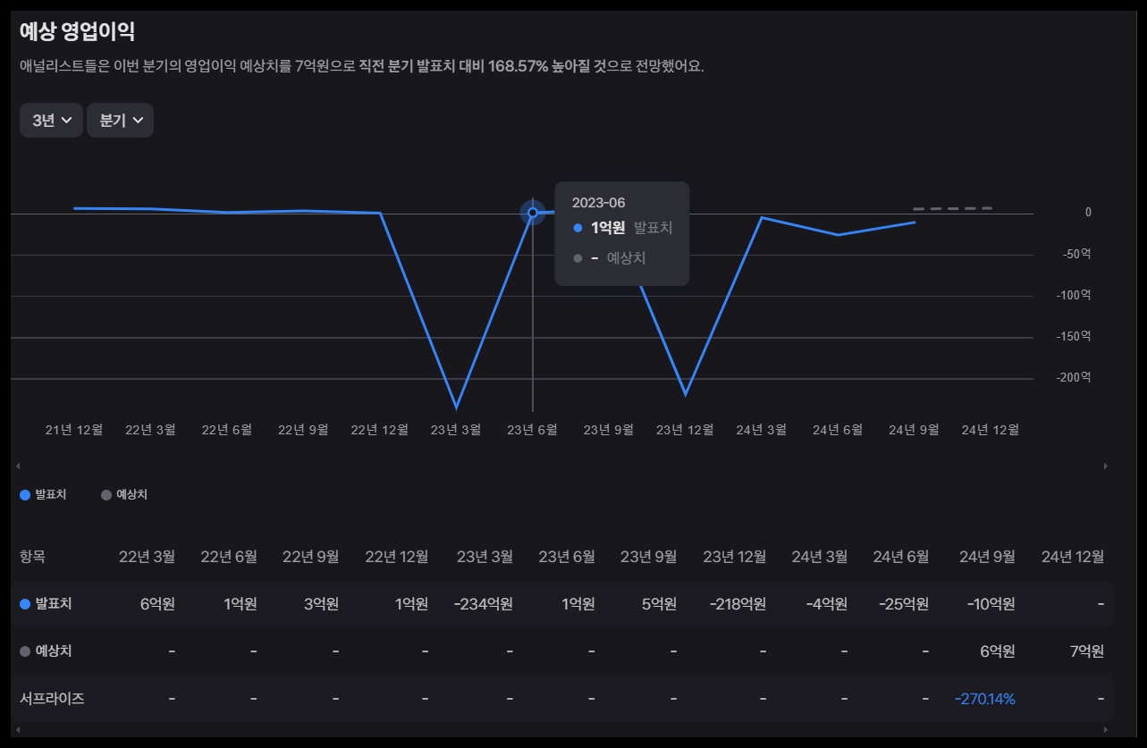 영업손실 폭을 감소시킨 점이 긍정적으로 평가됩니다.
