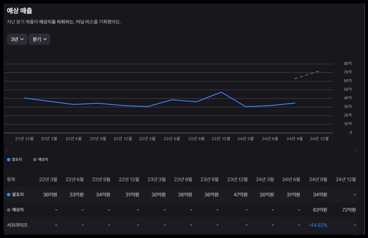 실적 측면에서는 2024년 3분기까지의 누적 매출액이