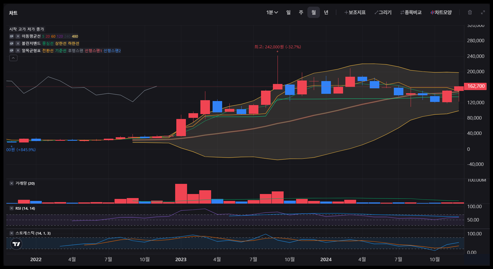 월봉 차트를 보면 2021년 고점 이후 하락세를 보였으나,