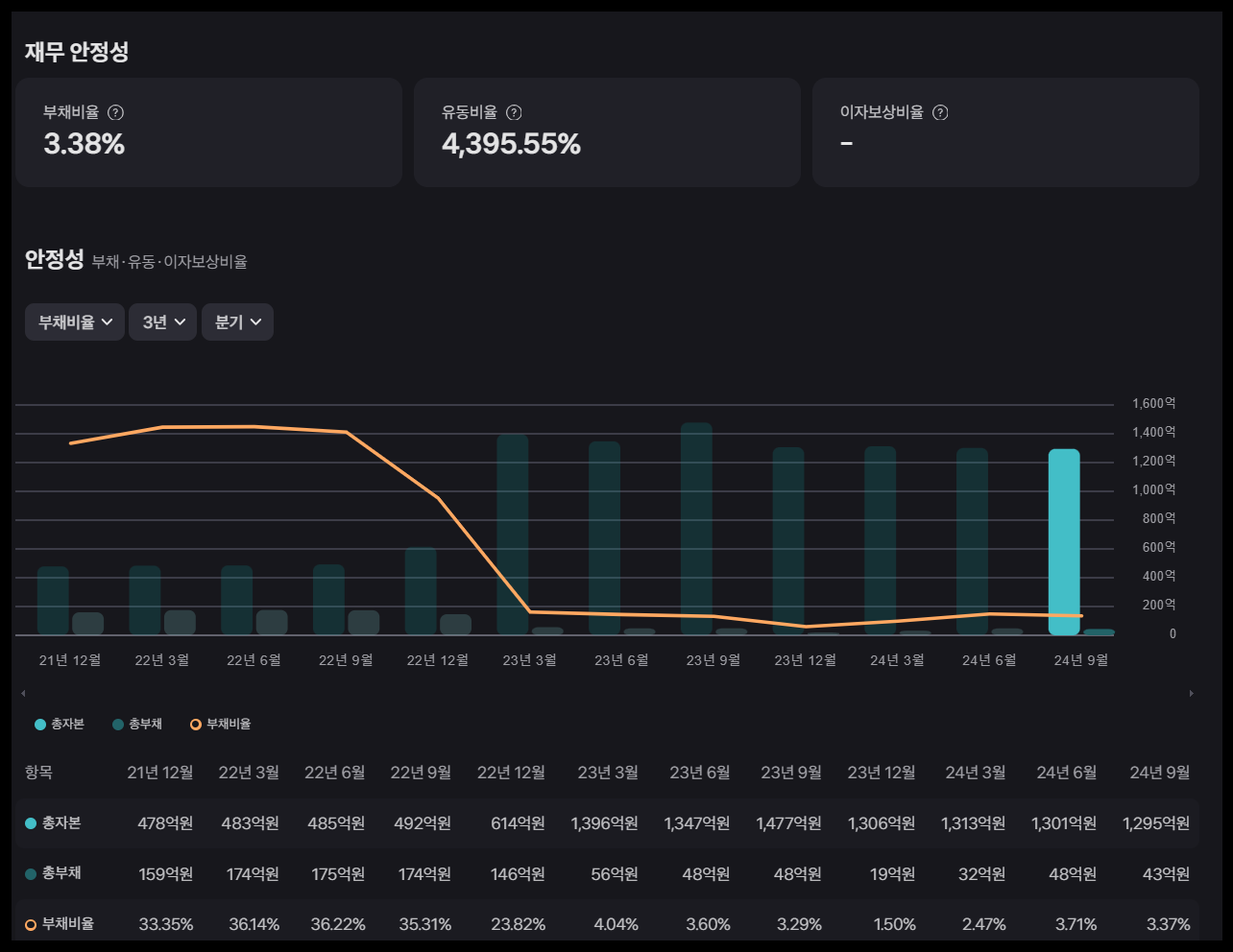 재무 상태를 살펴보면, 2024년 9월 말 기준