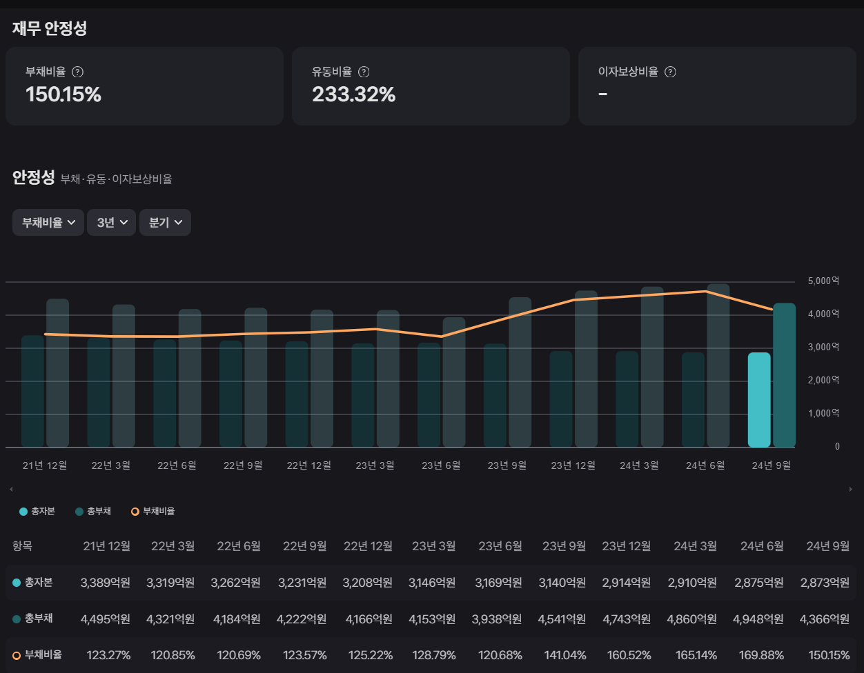 재무 건전성 개선이 필요해 보입니다.