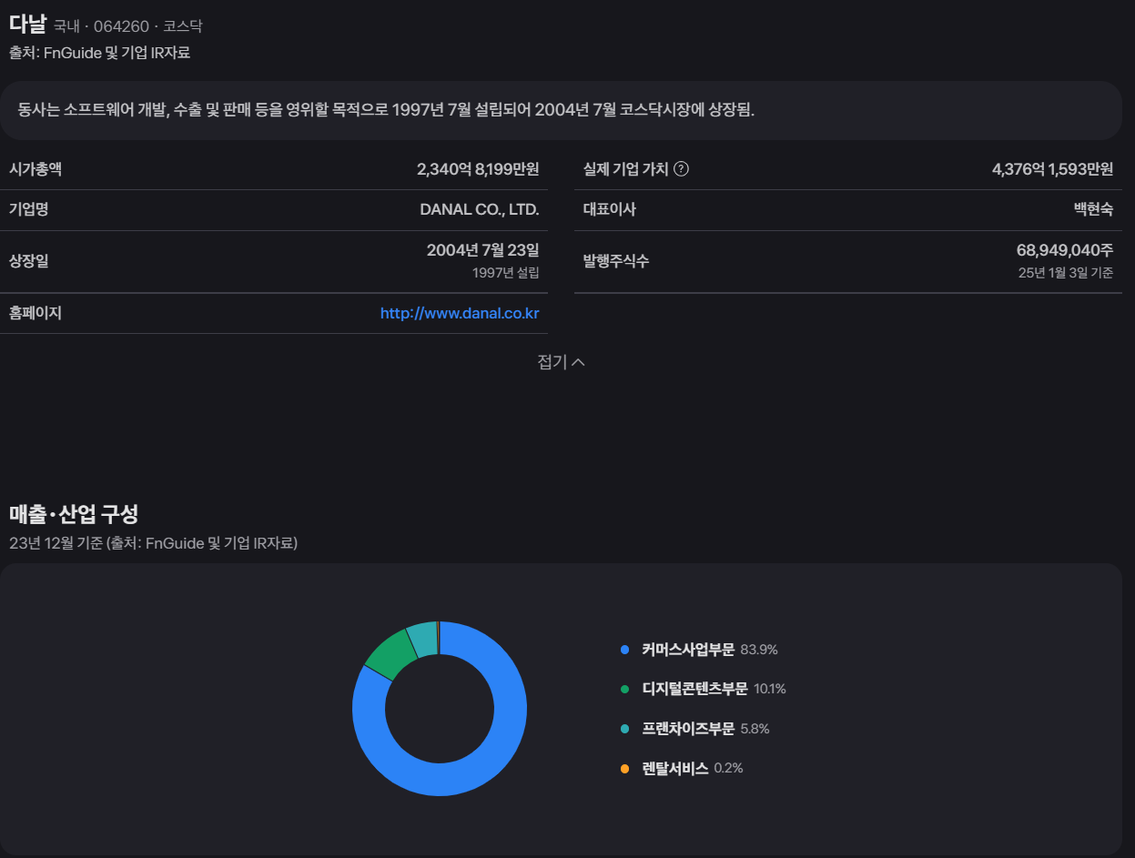 코스닥 상장사인 다날은