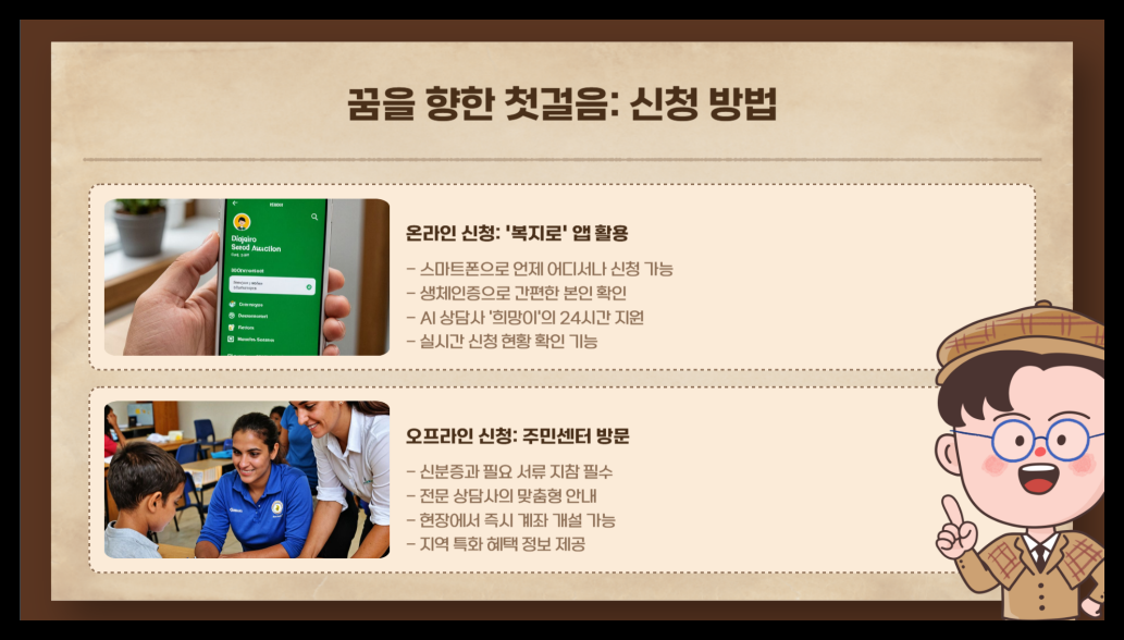 오프라인 신청: 가까운 주민센터를 방문해 직접 신청할 수도 있어요.