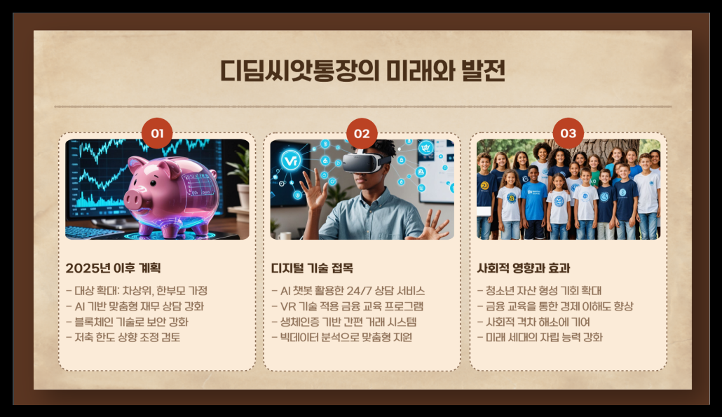 그리고 2025년부터는 AI 기반 맞춤형 재무 상담 서비스도 제공돼요. 각 아동의 상황에 맞게 가장 효과적인 저축 전략을 알려준다고 하니, 정말 실용적인 변화라고 생각해요!