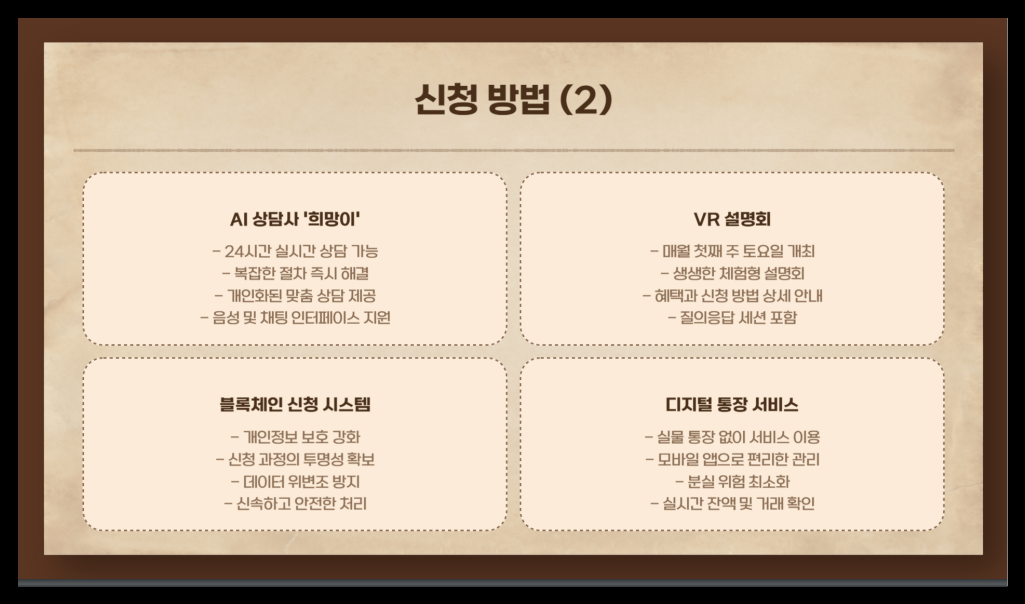 그리고 2025년부터는 블록체인 기술을 활용한 신청 시스템이 도입돼서, 개인정보 보호가 한층 강화되었어요. 이제 더 안전하고 신뢰할 수 있는 환경에서 신청할 수 있겠죠? 😊